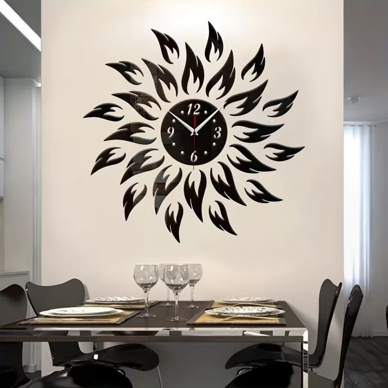 Laser Cut 3D Flame Shaped DIY Wall Clock Modern Creative Mirror Wall Clock