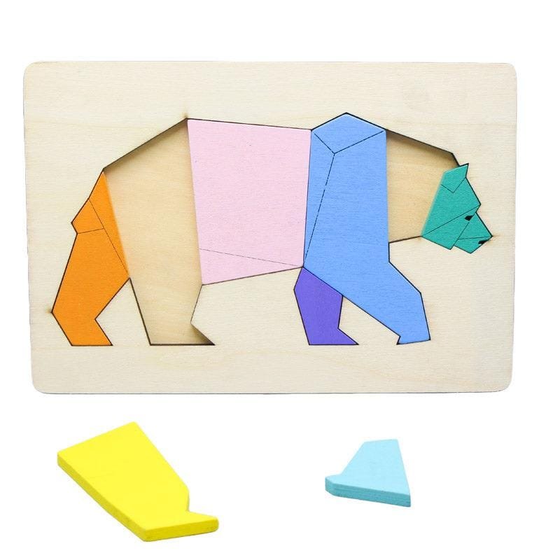 Laser Cut 3D Wooden Animal Puzzle, Bear Shape Puzzle Toy for Kids
