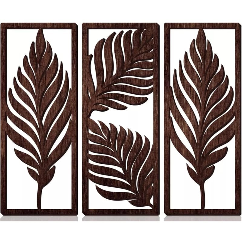- Laser Cut 3Pcs Wooden Wall Hanging Boho Rustic Rectangular Palm Leaf Pattern Wood Art.cdr