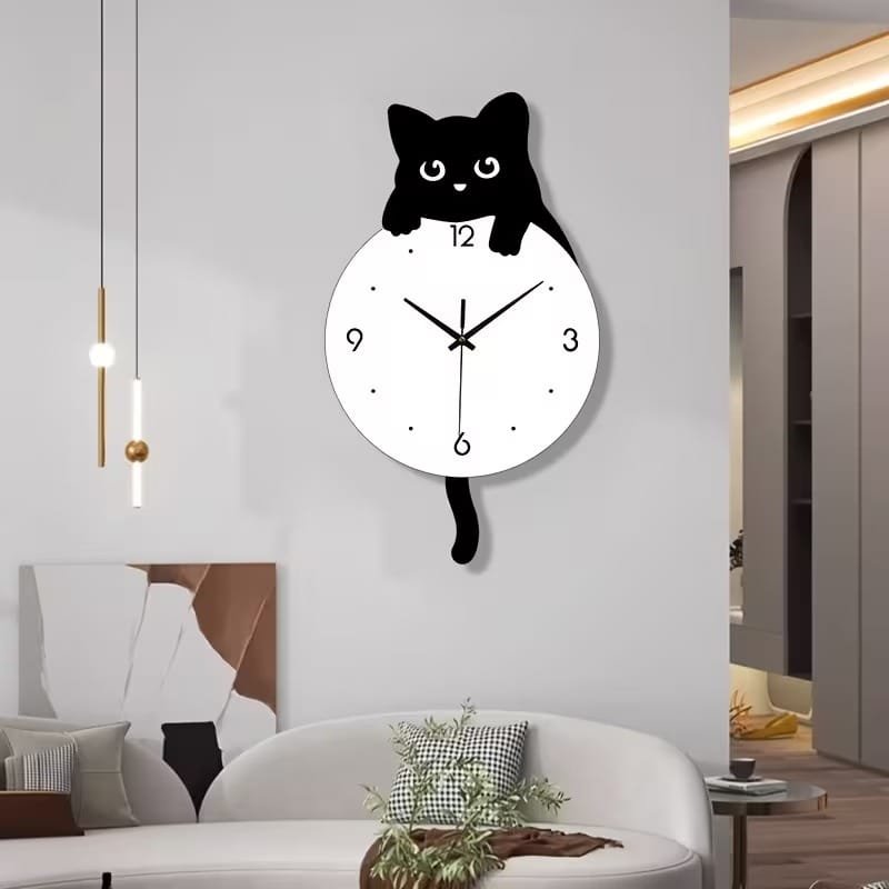 Laser Cut Acrylic Cartoon Cat Wall Clock – Kids Room Cat Decor