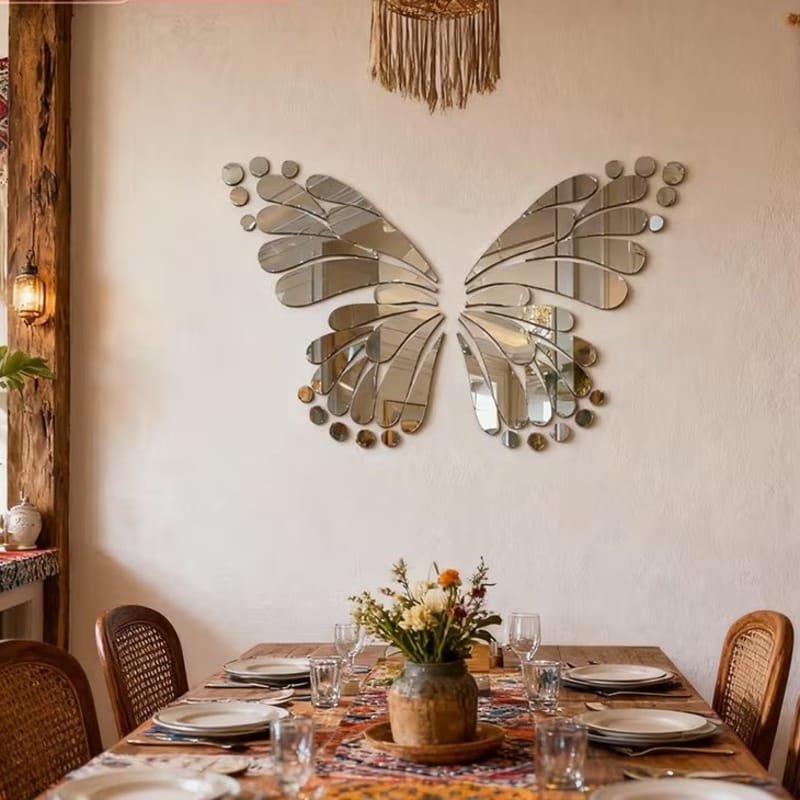 Laser Cut Artistic Butterfly Patterned Wall Mirror Openwork Decorative Acrylic Mirror Wall Decor