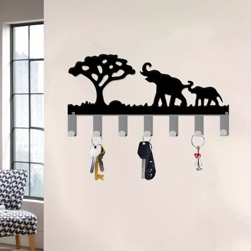 Laser Cut Decorative Elephant Metal Key Rack, Safari Key Holder Organizer for Entryway, Kitchen, Hallway
