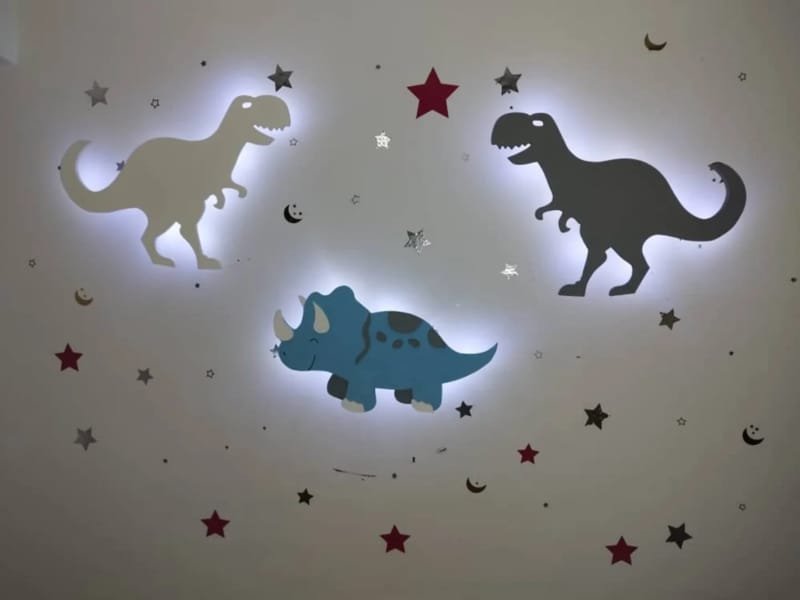 Laser Cut Dinosaur Nursery Wall Lamp Dinosaur Little Man Cave Wooden Sign