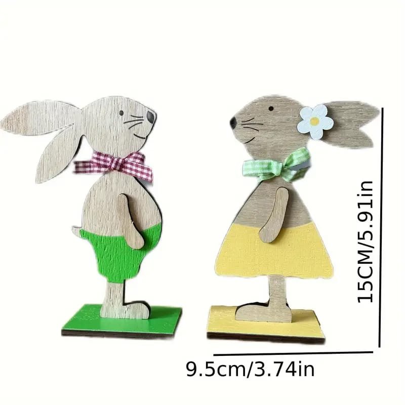 Laser Cut Easter Bunny Statue Decorations Wooden Couple Bunny Ornaments