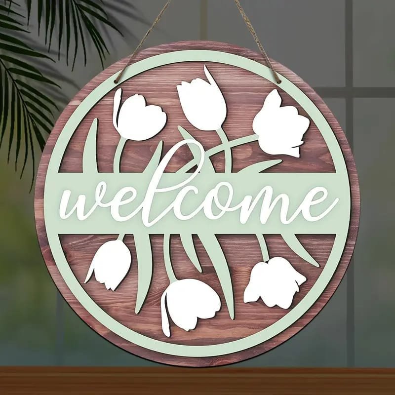 Laser Cut Floral Welcome Door Hanger – Welcome Floral Hanging Wooden Sign