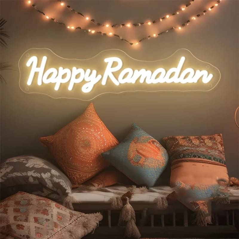 Laser Cut Happy Ramadan LED Neon Sign – Islamic Ramadan Decor – Ramadan Mubarak Wall Light
