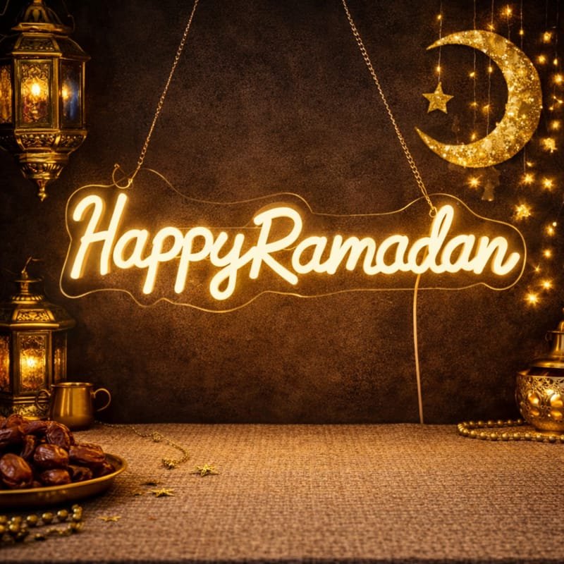 Laser Cut Happy Ramadan Neon Light, Eid Ramadan Decor Trends for Festive Atmosphere