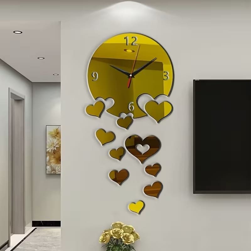 Laser Cut Heart Shape Wall Clock Creative DIY Acrylic Heart Clock With Mirror Stickers