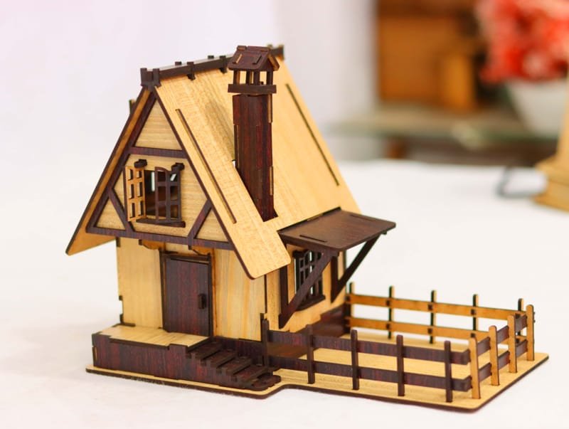 Laser Cut Kids Wooden Doll House, Miniature Wooden House
