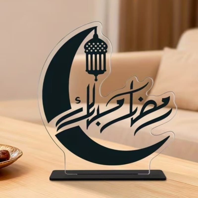 Laser Cut Ramadan Mubarak Table Decoration – Acrylic Ramadan Eid Al-Fitr Decorative Ornaments with Crescent and Lantern