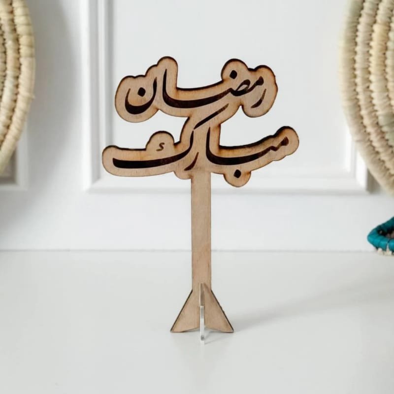 Laser Cut Ramadan Wooden Stand with the phrase Ramadan Mubarak, Elegant Islamic Table Decor