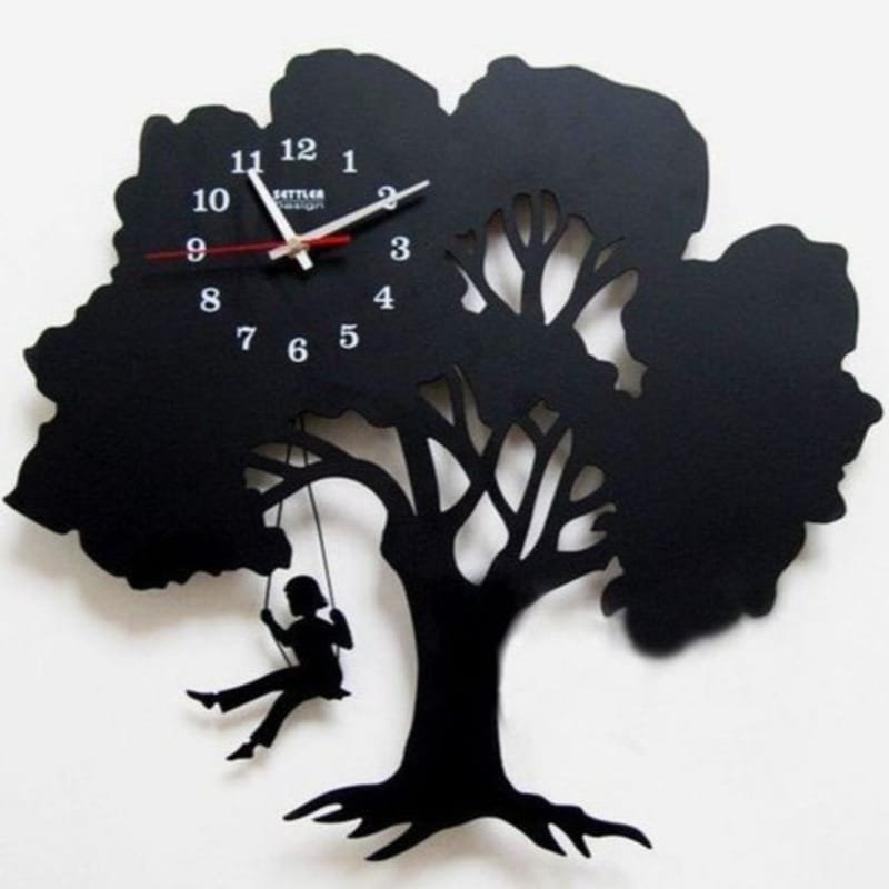 Laser Cut Tree Shaped Wall Clock With Girl On Swing