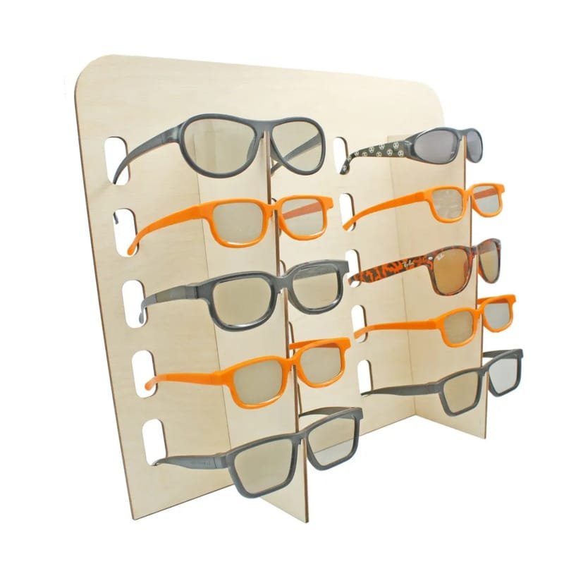 Laser Cut Wooden Countertop Display Stand For 10 Sunglasses