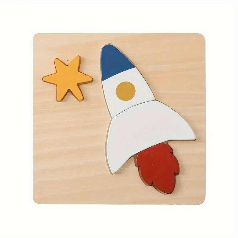 Laser Cut Wooden Rocket Shaped 3D Puzzle Educational Toddler Matching Blocks